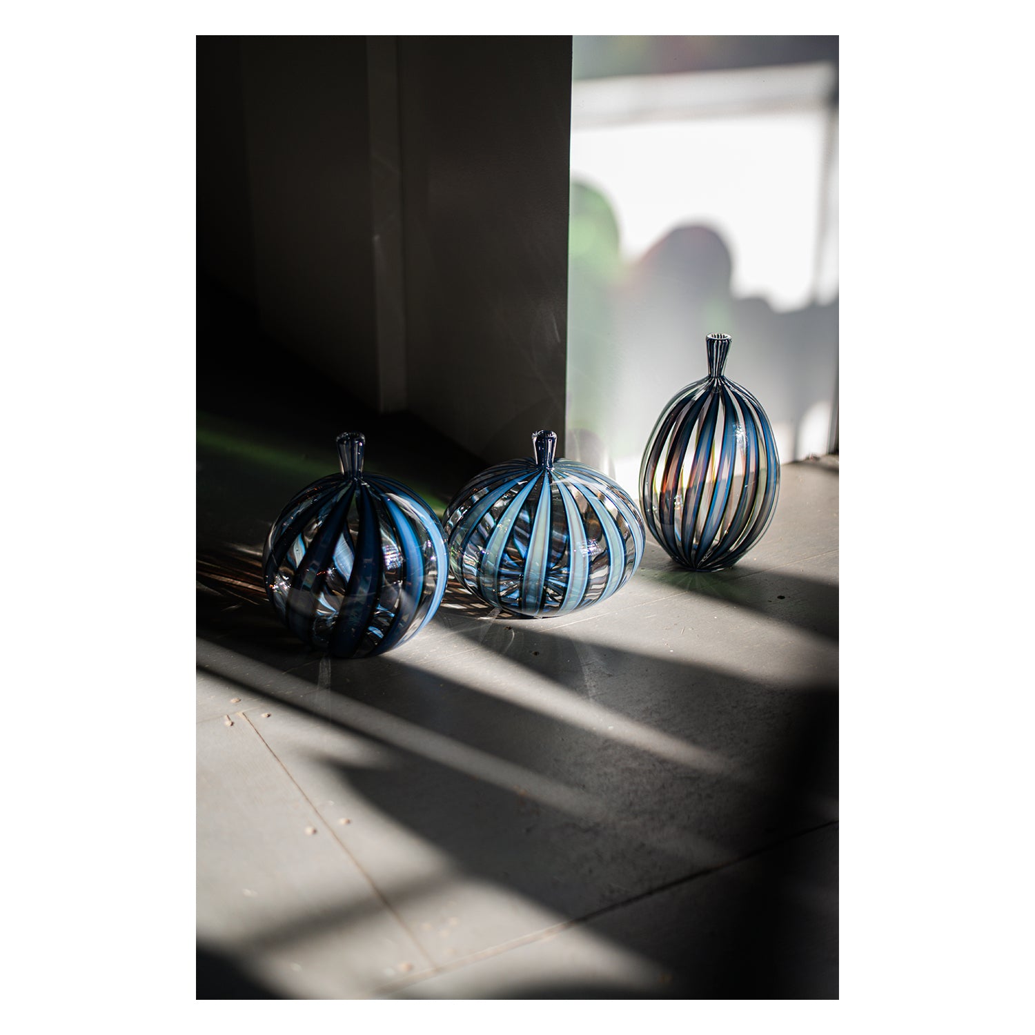 All pieces are made to order. Each item is crafted individually by hand; bubbles are an inherent part of hand-blown glass. Pieces may vary in size, shape and color. All sales are final.