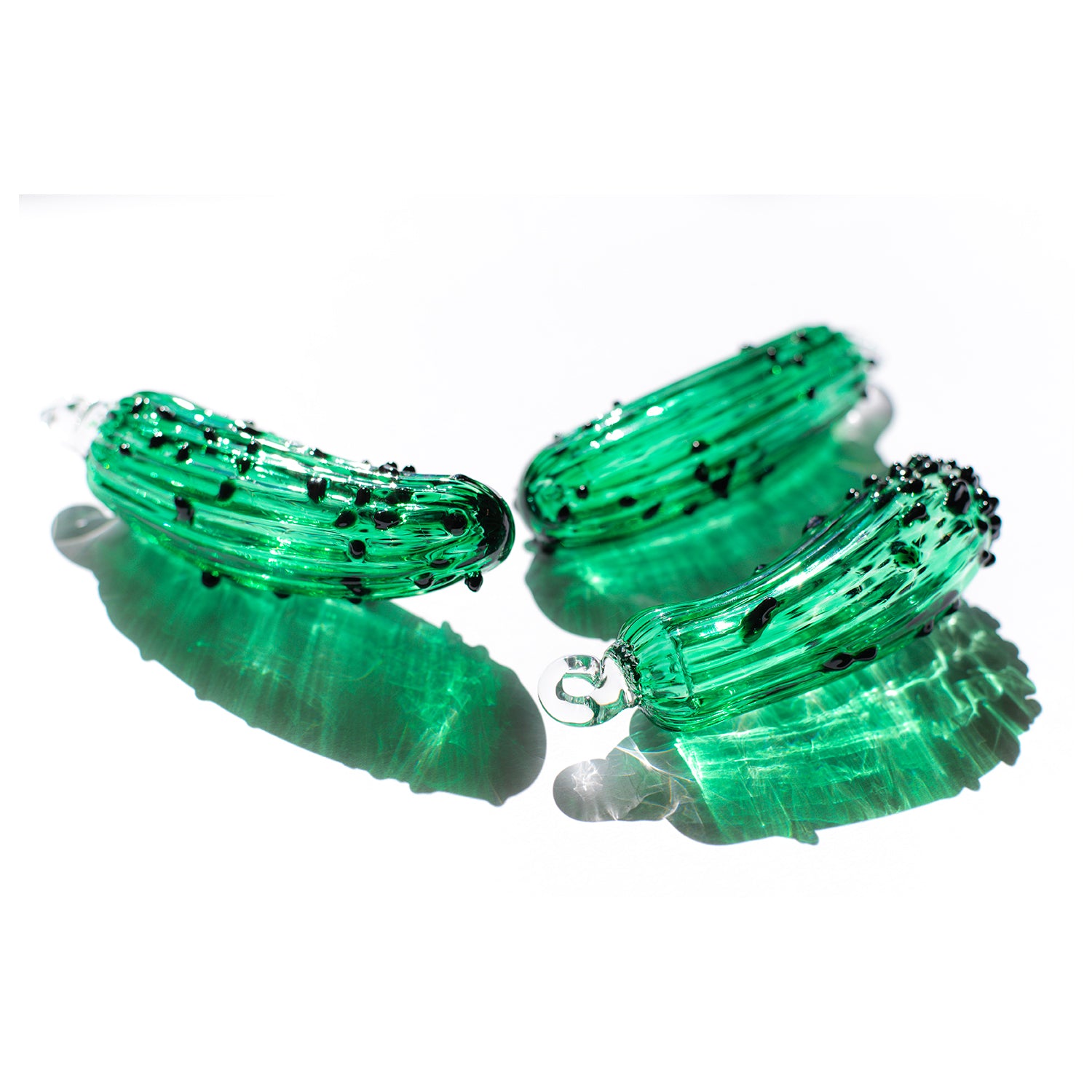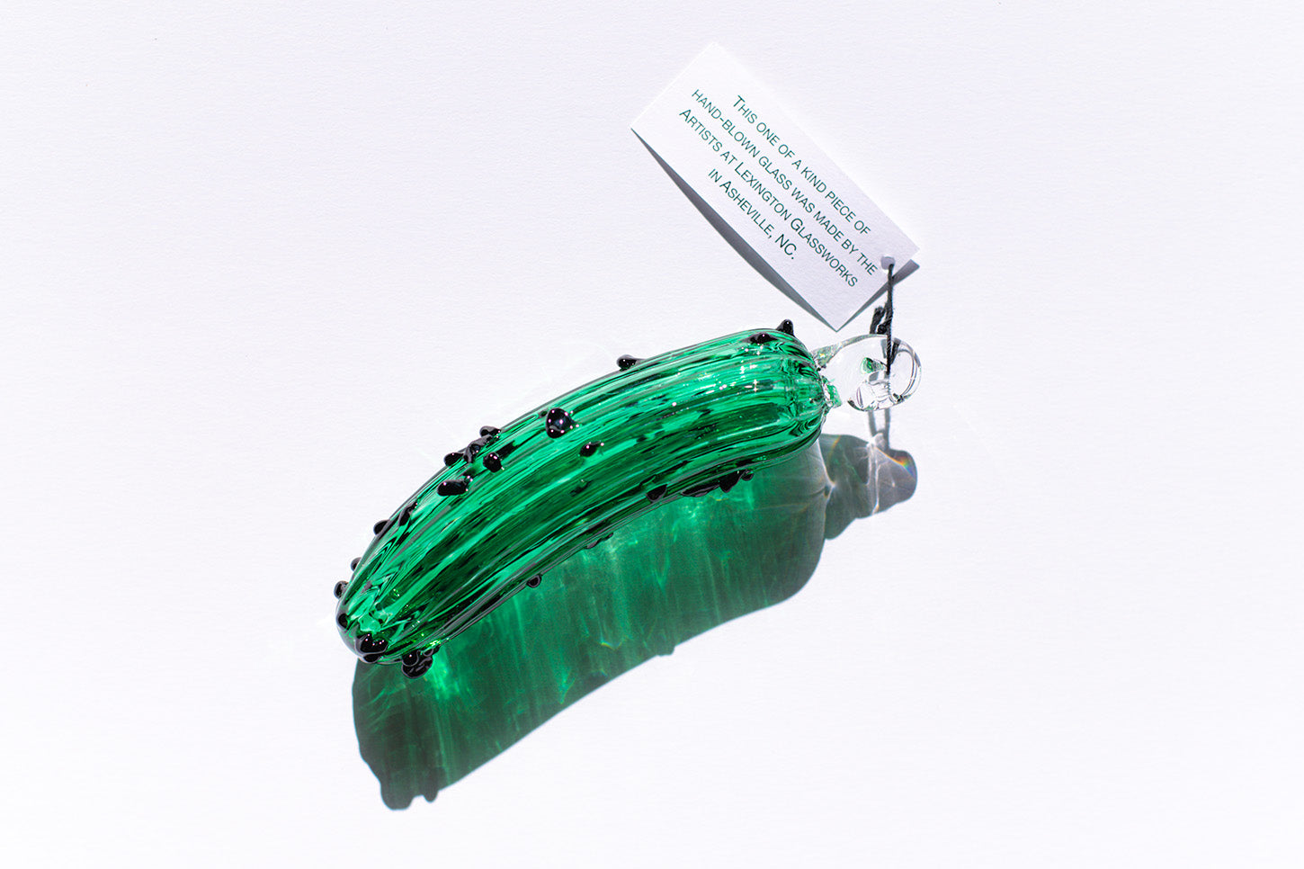 Our Christmas PickleĀ ornaments put a fun twist on a classic holiday tradition. According to German tradition, the first person to find the pickle hidden in the tree gets an extra gift and a bit of good luck. Each pickle is handblown, so no two are exactly alike, making it a unique addition to your tree or a thoughtful gift for someone special. Watch the YouTube video showing how we make our Pickles!